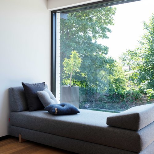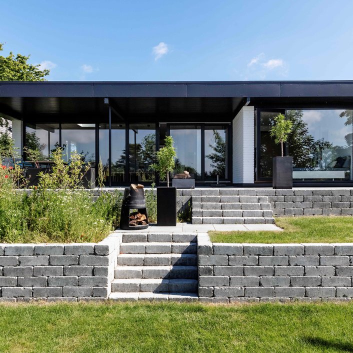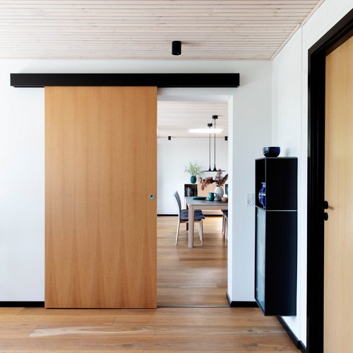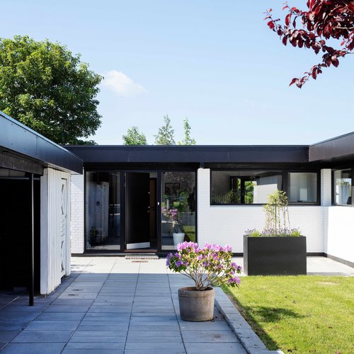 Mantraet blev, at intet skulle ændres eller erstattes, medmindre det var strengt nødvendigt. Der var dog samtidig behov for at energirenovere og få skabt et bedre flow i huset for at gøre det mere tidssvarende. Det blev gjort ved at åbne køkkenet mere op og optimere ”døde” kvadratmeter, der ikke blev brugt optimalt. En sauna og tre døre ved entréen og køkkenet blev bl.a. nedlagt. Det har gjort, familien har fået et regulært børneværelse, badeværelse og brygges. Den røde tråd blev hentet i den japanske og danske modernisme, hvor overgangen mellem ude og inde ophæves, og der anvendes materialer, som afspejler naturen. Særligt det japanske var bygherre glad for, da han arbejder som sushikok og i øvrigt har en passion for akvariefisk.