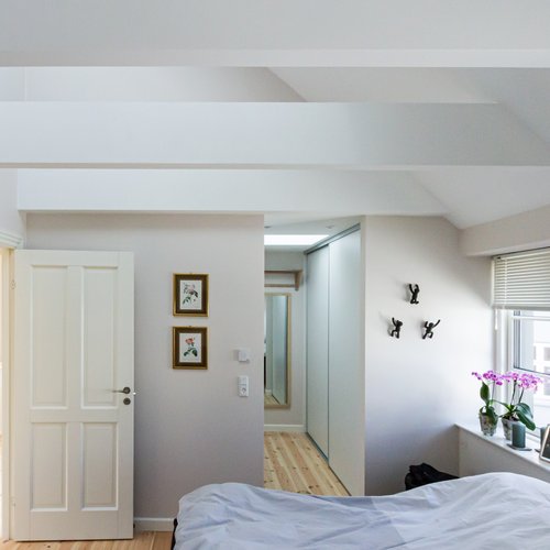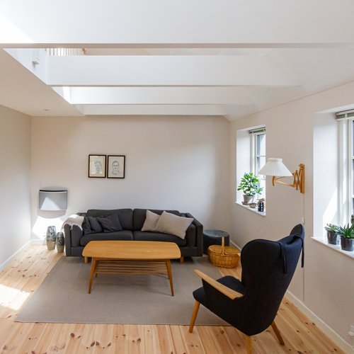 Huset skulle ombygges og tilføjes en ny og mere effektiv tagetage. Indretningen moderniseres med en indretning der gav muligheder for et nyt liv i huset med gode muligheder for fælles ophold og steder til fordybelse og afslapning.