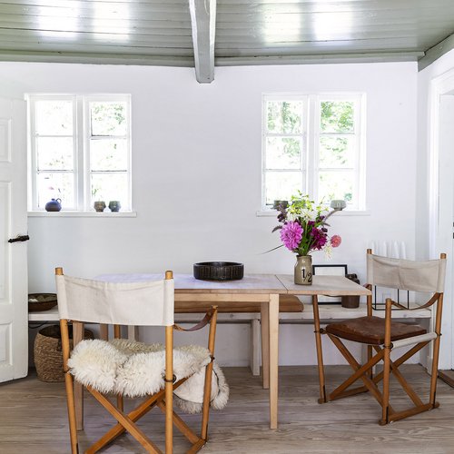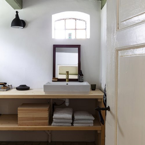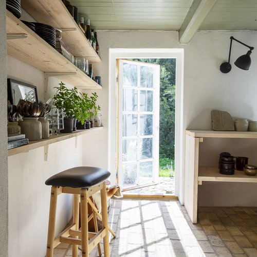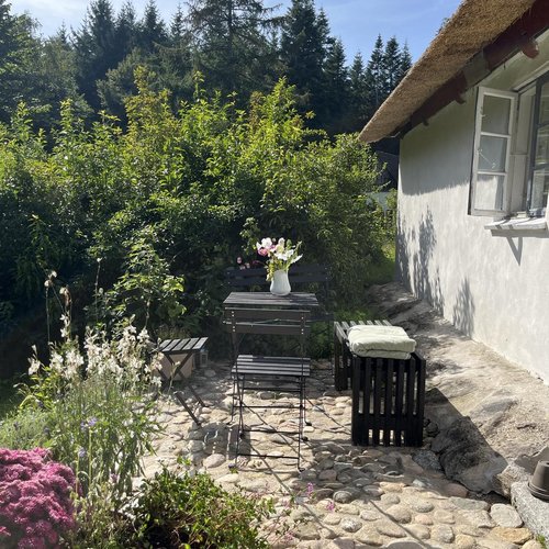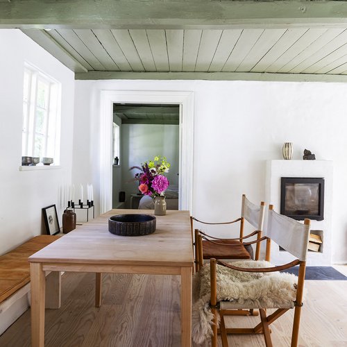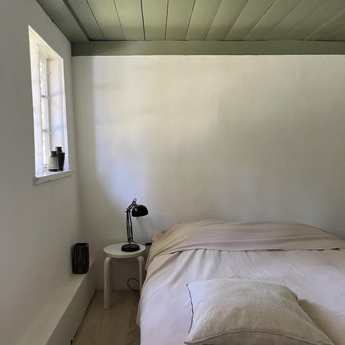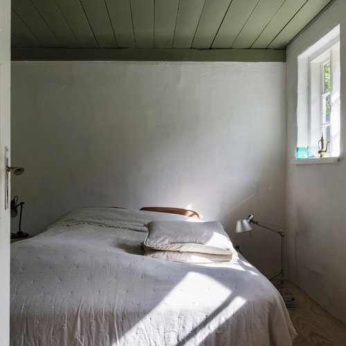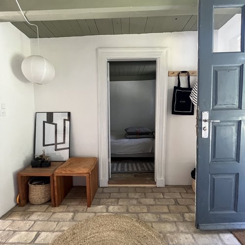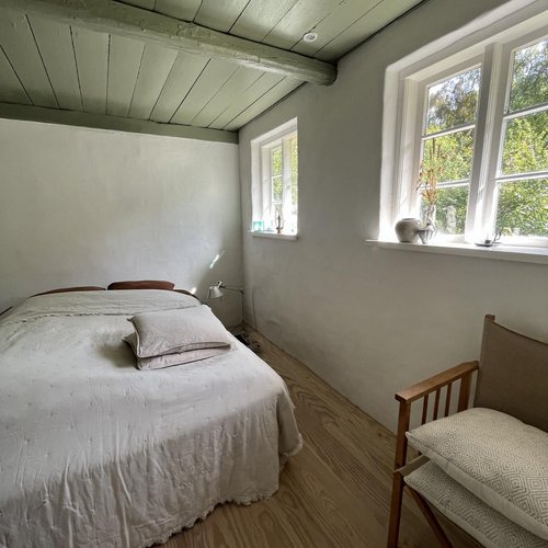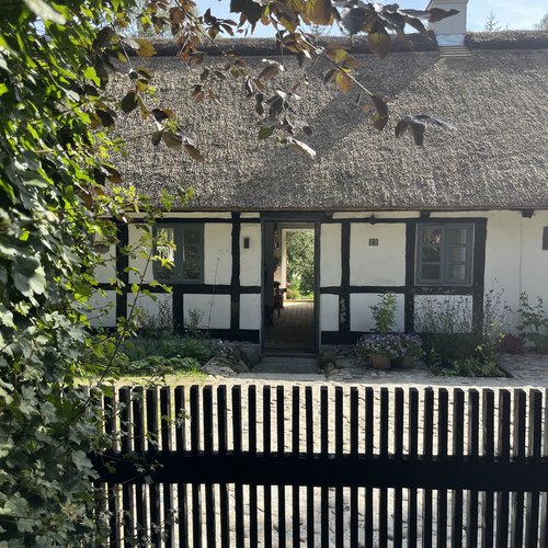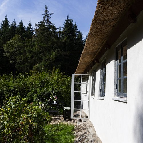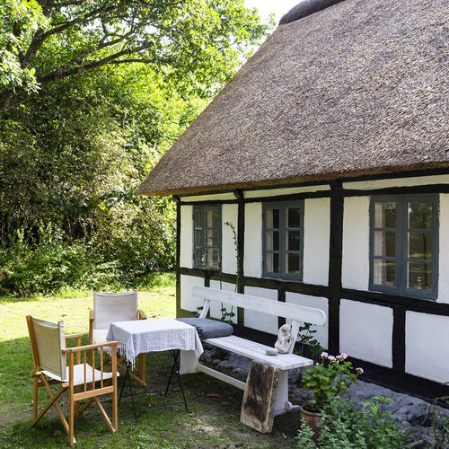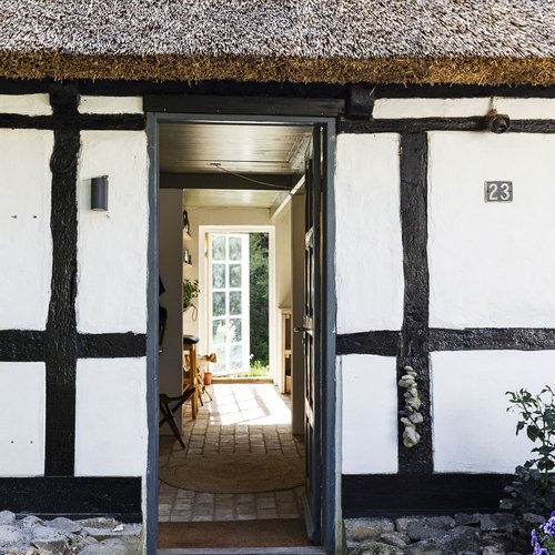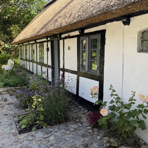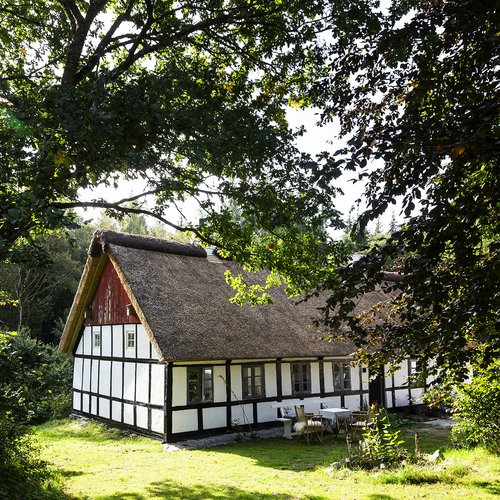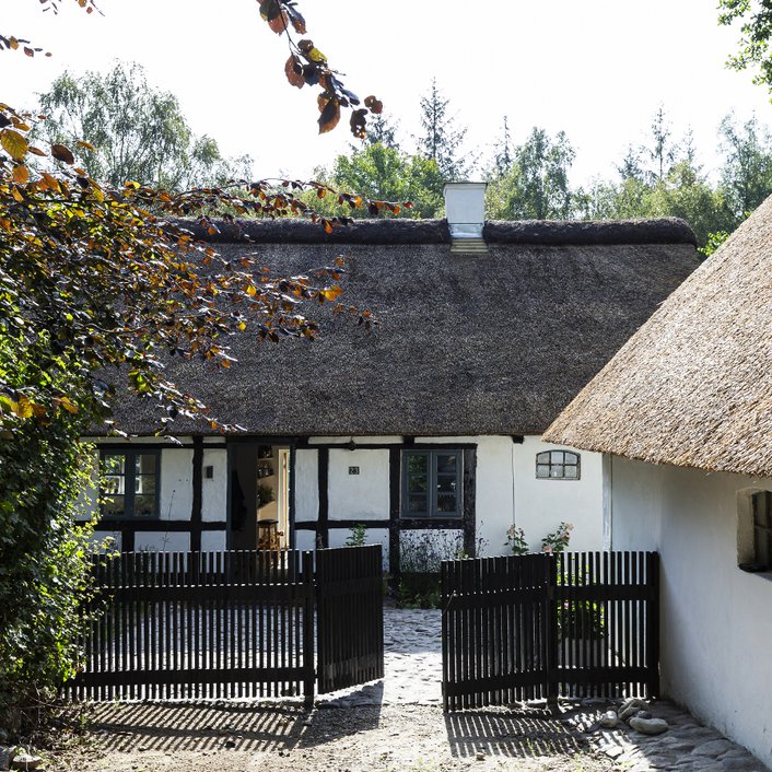 Bygningerne består af et stuehus i bindingsværk fra ca år 1870 samt et udhus/lo. Opbygningen af stuehuset var klassisk for et gammelt bindingsværkshus fra den tid med en tidligere stald i den ene ende og boligen i den anden. Både inde og ude var huset ødelagt af forkerte “istandsættelser” som var skyld i skimmelsvamp i væggene. Det oprindelige håndværk og mange af materialerne inde bag ved var dog værd at bevare. Som lagene blev skrællet af et efter et åbenbarede de gamle byggemetoder sig og viste, hvordan man dengang byggede bæredygtigt. Materialer og farver er valgt i overensstemmelse med husets oprindelige udtryk og bidrager til den fredfyldte stemning og rolige karakter. Under renoveringen blev der genbrugt alt, hvad der kunne genbruges, og så vidt muligt kun købt brugte materialer, hvor de oprindelige ikke kunne genbruges.