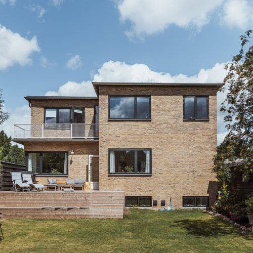 Huset er opført i 1933 som et flot eksempel på en klassisk funkisvilla i gule sten og i 2 etager. Huset var kun blevet handlet én gang tidligere og fremstod derfor i meget original og nedslidt stand, da familien på 4 overtog det. Der skulle derfor en gennemgribende renovering til, hvor også kælderen blev gjort mere anvendelig ift. indeklima og isolering. Køkkenet blev åbnet op til spisestuen for at skabe et bedre flow og lys, selvom det betød, at det lille gæstetoilet måtte nedlægges. Til gengæld blev der etableret et nyt, stort badeværelse i kælderen.