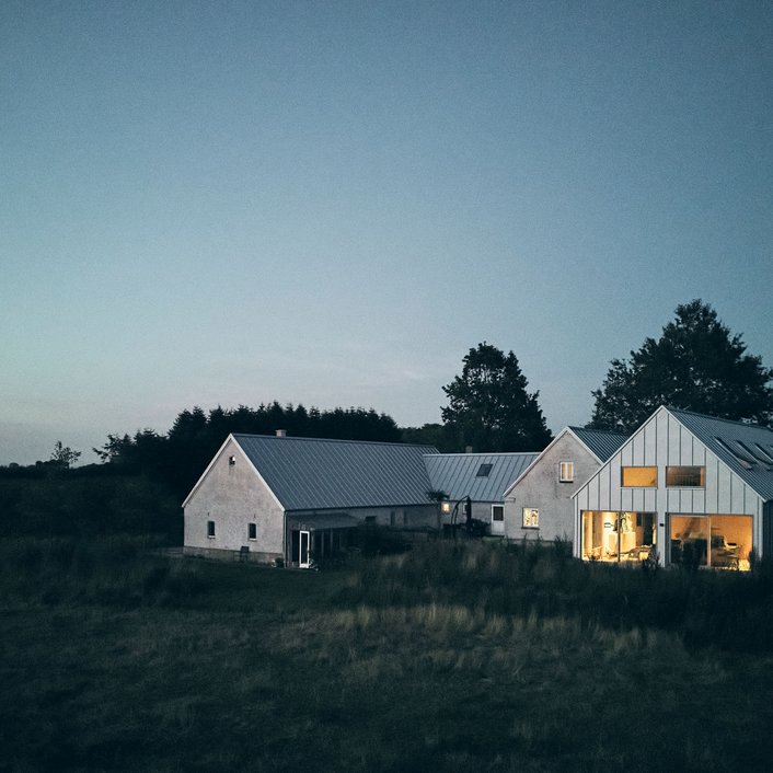 Ved at bevare og genbruge de gamle bygninger har vi ikke blot mindsket klimaaftrykket – vi har også skabt en fin symbiose mellem nyt og gammelt. Tilbygningen udvider boligarealet, forbedrer dagslyset, skaber udsigt og tilføjer en ekstra arkitektonisk og funktionel kvalitet. Resultatet er en varm og levende ramme for familieliv midt i det smukke landskab.