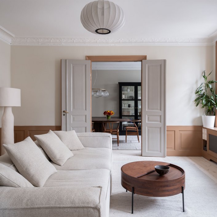 Projektet er en hyldest til fortidens elegance og nutidens moderne livsstil, hvor vi med stor respekt og kreativitet har vækket en københavnerlejlighed fra 1804 til live.