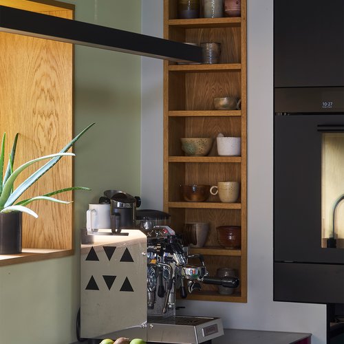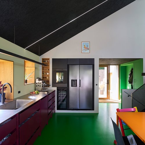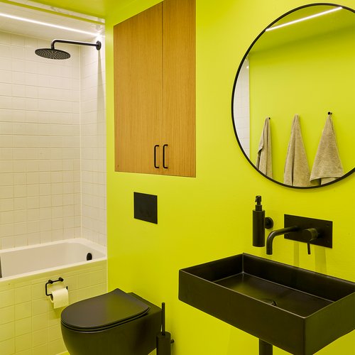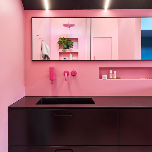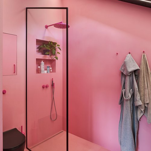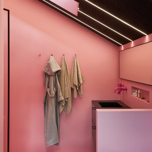 Dertil har familien fundet glæden ved farver i boligen og i visse rum valgt ens farver til både gulve, vægge og skabe, sågar badeværelsesarmatur, der på elegant vis understreger rummenes karakter og funktion.