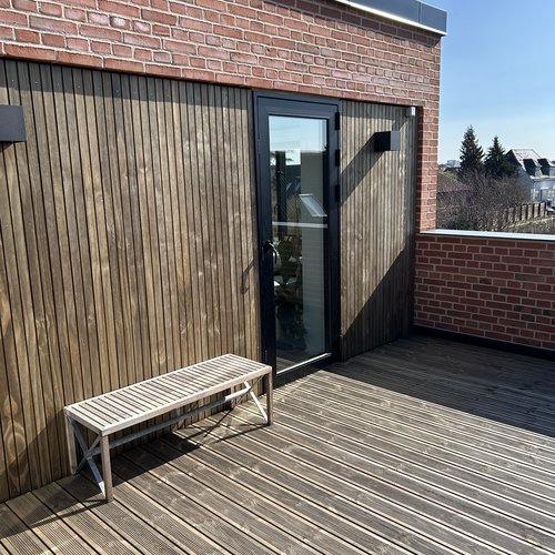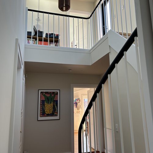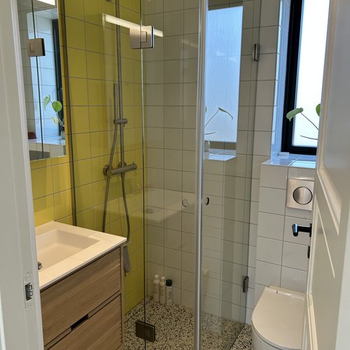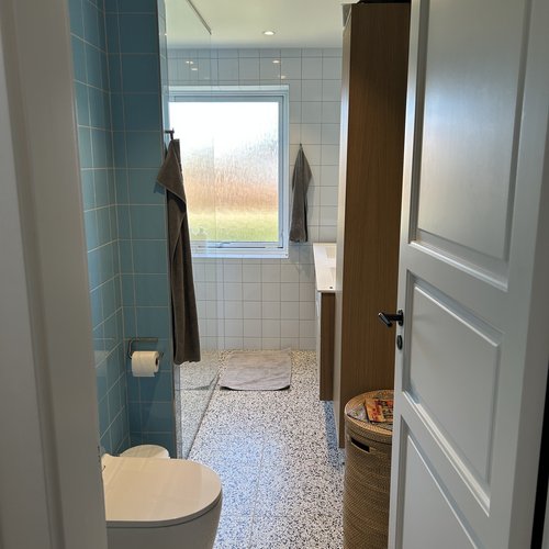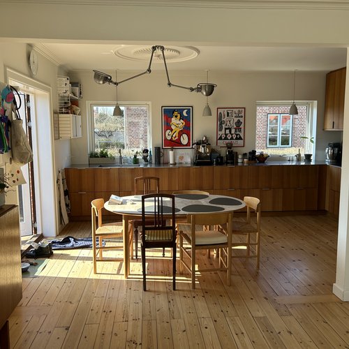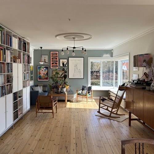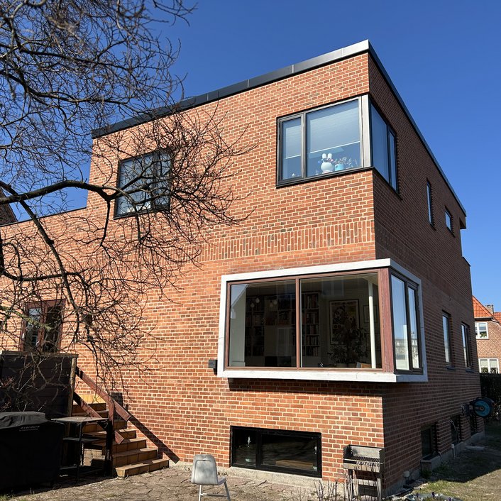 Bungalowen blev renoveret med ny planløsning ved overtagelse i 2019 og i 2024 er der bygget en første sal på og udtrykket ændret fra Bungalow til Funkis. Ved at tilpasse boligen løbende til vores behov, har vi kunnet bevare den eksisterende bolig og renovere/tilbygge med respekt for den oprindelige bolig og de eksisterende materialer frem for at rive bygningen ned, hvilket ellers er en udpræget praksis i vores område. Tilbygningen blev lavet, da de gamle tag alliegevel skulle udskiftes. Vi har udnyttet bungalowens vinkel til at skabe endnu bedre udeområder, i form af to tagterrasser.