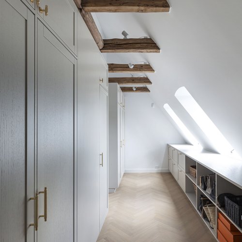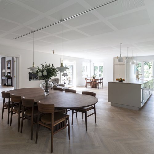 Renoveringen af den klassiske liebhavervilla havde til formål at omdanne 3 boliger under samme tag til én sammenhængende familiebolig. Hele boligen er totalrenoveret med henblik på forbedret udnyttelse, indeklima og et lavere energiforbrug. Kælderen er indraget til nye daglige funktioner og spidsloftet er indraget således at 1.salen har loft til kip. Dette gør huset lyst og spaciøst.