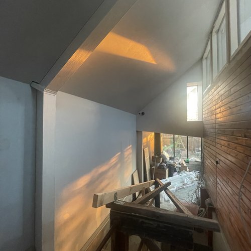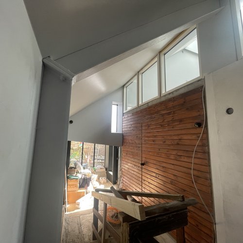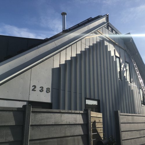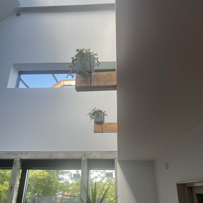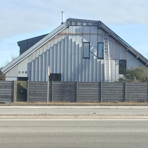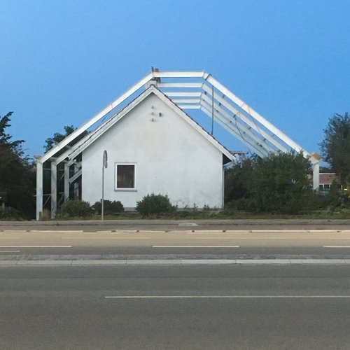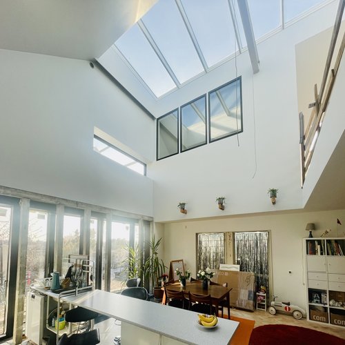 Vores til en vis grad selvbyggede hjem kan bedst beskrives som et hus udenom et eksisterende hus med et tag, der åbner sig mod himlen i kippen. Den åbne kip gør himmellyset og naturlig ventilation til et afgørende karakter i husets rum.