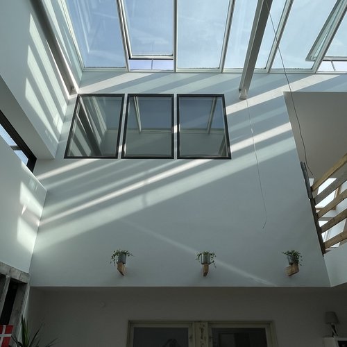 Derfor var det vigtigt for os, at forbedre indeklimaet og sikre Himmeludsigt (og dermed Dagslys-input) fra langt de fleste rum med mulighed for effektiv naturlig ventilation via “skorstenseffekten” igennem samspil mellem facade- og tagvinduer.