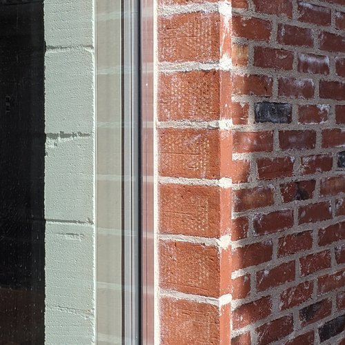 Den tilføjede arkitektur er klart anderledes end det eksisterende, men ønsker ikke at se ny ud. Murværket samles med tykke grove fuger, der gør fugen vigtigere end den enkelte sten.