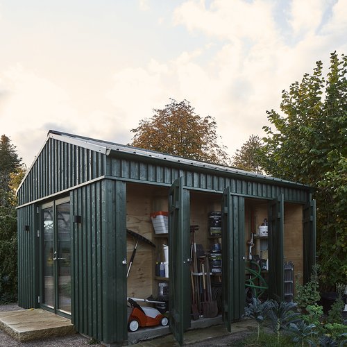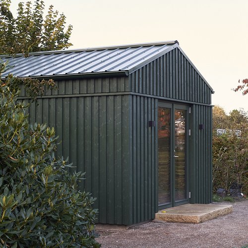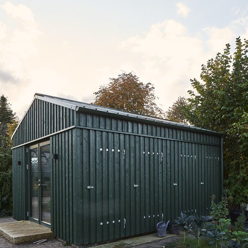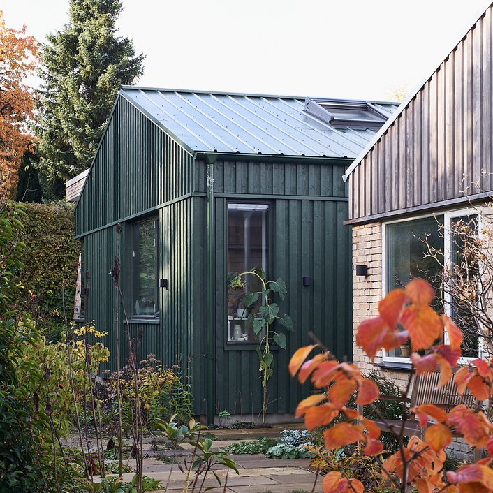 Alle materialer er valgt så bygningens samlede CO2-aftryk er holdt så lavt som muligt. Tilbygningens primære bygningsdel er træ, ligeledes er den nye terrasse som forbinder bygningerne mod syd udført i træ. Karakteristisk for tilbygningen er den grønmalede træfacade. Herigennem opnår tilbygningen en selvstændig karakter, samtidigt med at de to bygninger fremstår med et samlet harmonisk udtryk i kraft af deres identiske geometrier og bygningsdetaljer. Der er etableret en ny vandtank til opsamling af regnvand til toiletskyl.