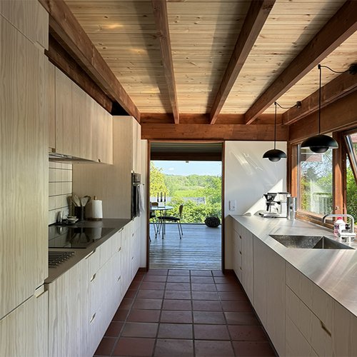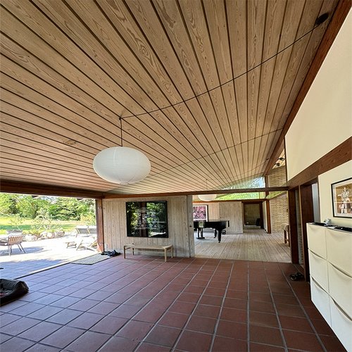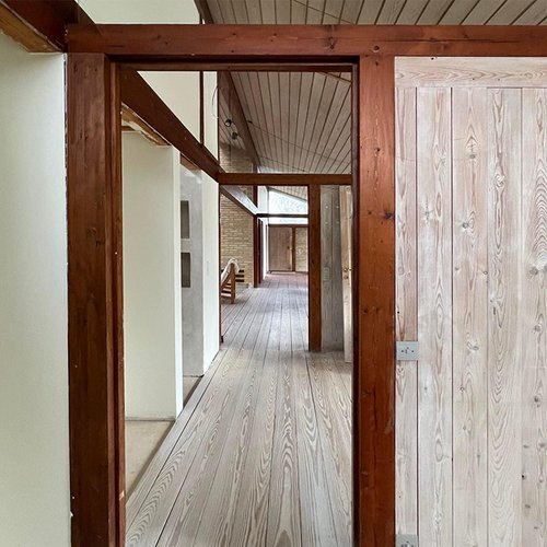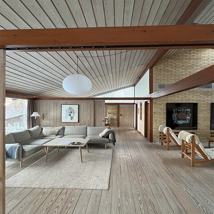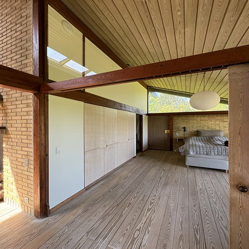 Huset var blevet ændret væsentligt fra det oprindelige, da vi overtog huset i januar 2024, og var tilført unaturlige materialer, som ikke harmonerede med de oprindelige enkle materialer. Vi har tilbageført huset som det oprindeligt så ud, i samarbejde med Jørgen Rasmussen.