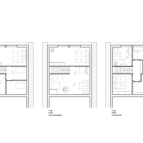 Førstesalen er blevet optimeret med fire værelser og små hemse, som både giver opbevaringsplads og mulighed for overnattende gæster.