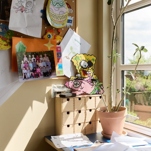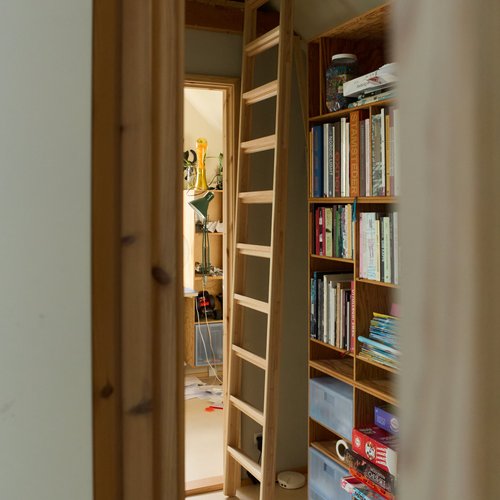 Arkitekten har forvandlet familiens hjem til et sted, hvor hver m² tæller – og hvor plads, materialer og funktion er valgt med omtanke – også for muligheder på lang sigt. Projektet her er et ærligt og varmt bud på, hvordan fleksibilitet i boligen ikke nødvendigvis kræver avancerede ombygninger eller tilbygning. Gennem stringent indretning, genbrug og forståelse for funktionelle behov demonstrerer projektet, hvordan små m² kan udnyttes med stor effekt. Her er der kun 20 m² boligareal per person, men stadig plads til leg og fleksibel brug af rummene.