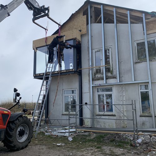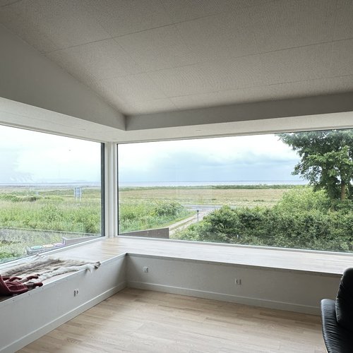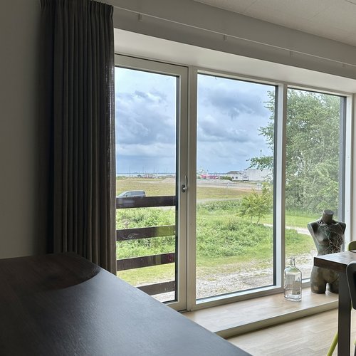 Vi kunne se for os, at der på 1 sal kunne blive en skøn lejlighed med panorama udsigter i flere retninger. Mod nord lidt i det fjerne kan man følge det pulserende liv på dæmningen og mod øst kan du følge døgnets gang med ebbe og flod i Vadehavet. Fra køkken/alrum og stue får du også imponerende solopgange, du kan følge livet på havnen og færgernes pendulfart mod Tysklands nordligste ø, Sild.