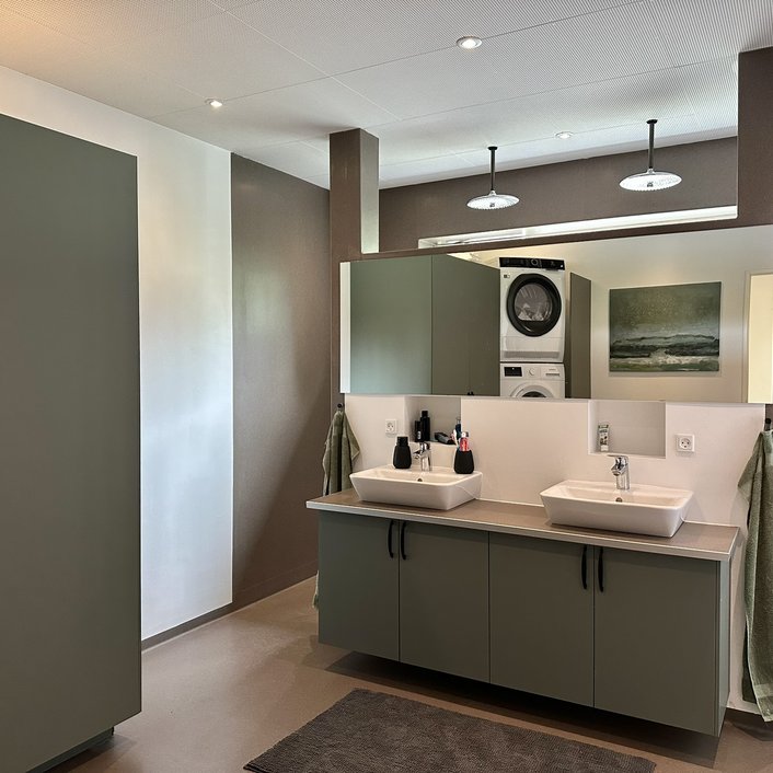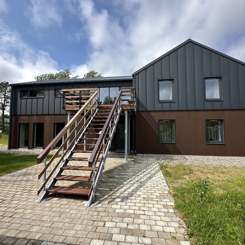 I stueplan blev indrettet gode værelser med henblik på udleje til enkelte overnatninger, samt en fin ét værelses lejlighed for permanent udlejning. Hertil kommer et stort teknikrum, som også fungerer som magasin for lejligheden på 1 sal.