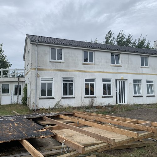 Ejendommen blev i sin tid opført som Rømø´s Missionshotel. Den har senest været benyttet som B&B, cykeludlejning samt privat beboelse for indehaverne. Ejendommen havde stået ubenyttet hen i en årrække og var i kraftig forfald. På selve hovedhuset var gennem årene tilført flere knopskud i form af halvtage, vinterstue, udhuse mm. Huset var i grove træk uisoleret og opvarmning skete med el radiatorer og brændeovne. Murfacader var nogle steder i meget dårlig stand, og rumhøjden på 1 sal var ej lovlig. Men med den fine beliggenhed tæt ved havet og havnen, og den ca 5000 m2 store grund, syntes vi der var potentiale til stede.