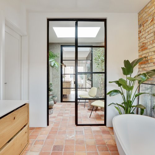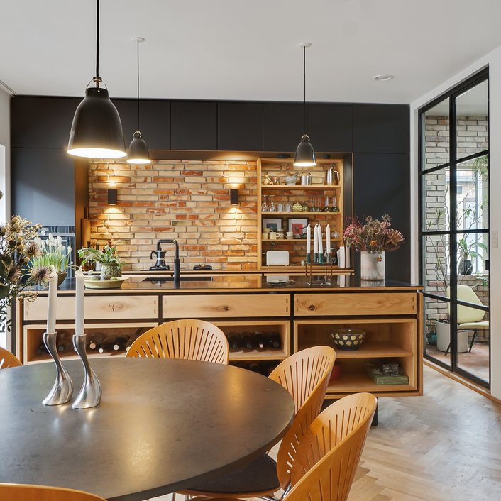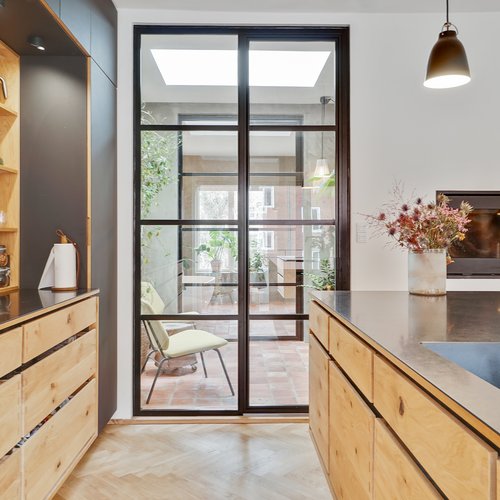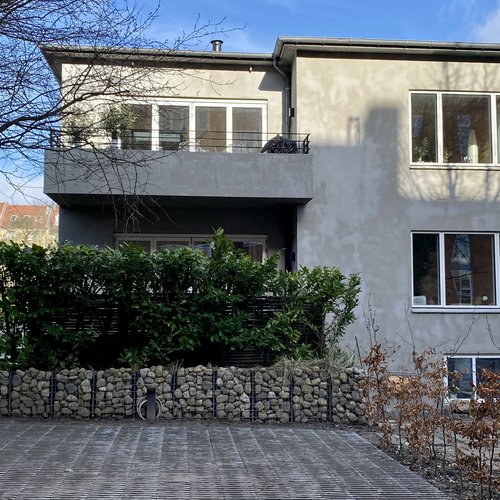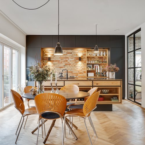 Bygherren ønskede at opdatere huset på alle fronter, styrke udtrykket og sætte sit eget præg på en moderne bybolig, der er skræddersyet til eget behov. Alle bærende konstruktioner er genbrugt og husets hovedstruktur er bevaret. Hele skallen er genbrugt, men energioptimeret med ny isolering i vægge, tagrum og gulve, brand- og lydisoleringer mellem enhederne, tre-lags ultra-lavenergi vinduer overalt, ventilationsanlæg og nye energibesparende tekniske installationer til al el, vand og varme.