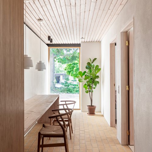 Mødet mellem den uprætentiøse nøgne gasbeton og de nye egetræselementer bidrager til husets helt særlige karakter. Efter renoveringen fremstår huset med fornyet vitalitet, bidrager med fortællinger og indskriver sig forsat naturlig på stedet, og styrker opfattelsen af helhed i kulturmiljøet.