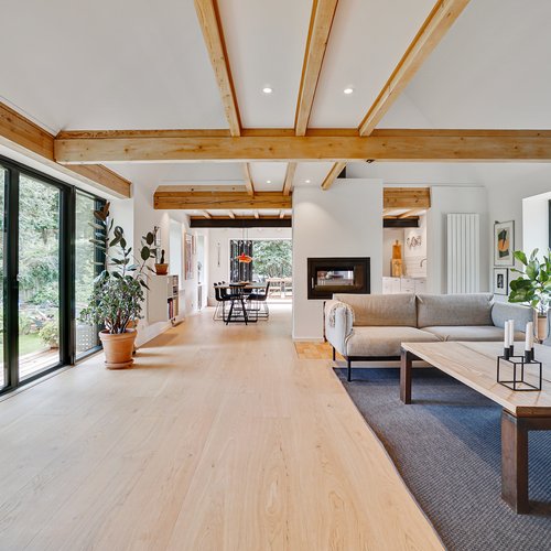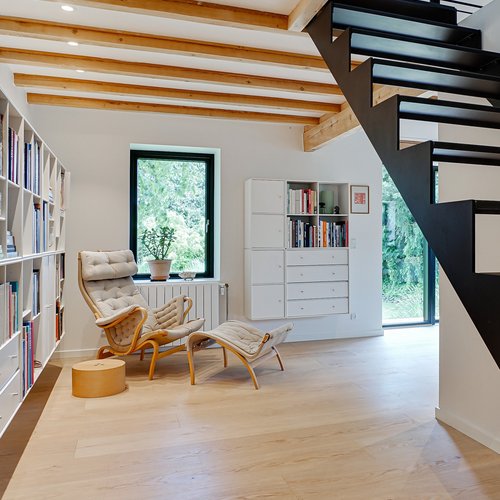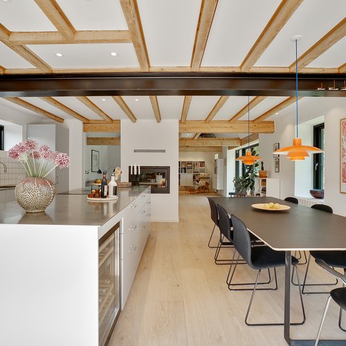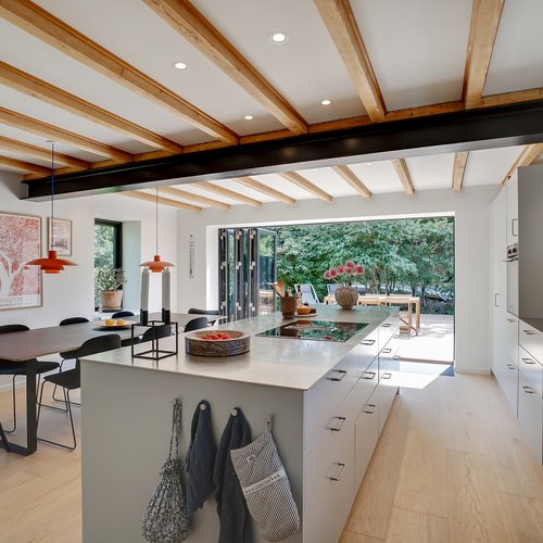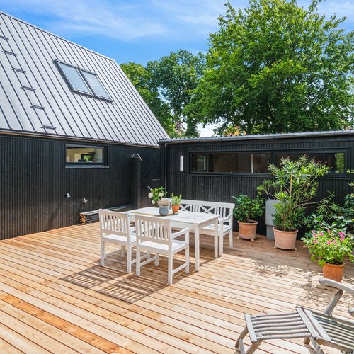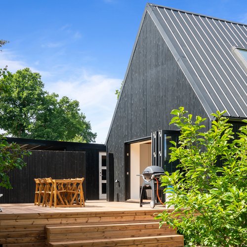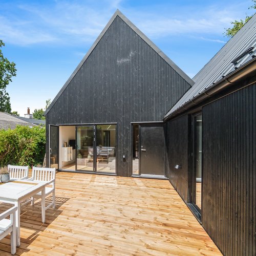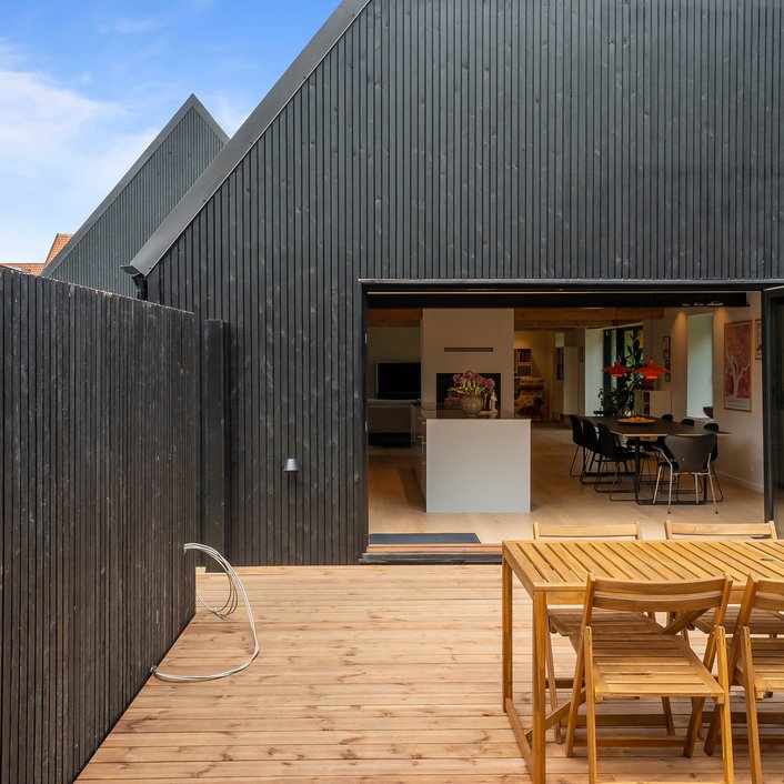 Det oprindelige hus er udvidet med en ny og moderne tilbygning til mormor, og der er skabt plads til tre generationer med egen bolig og fælles udearealer og indgang. Det er en overbevisende løsning, som viser potentialet i ældre enfamiliehuse, som kan blive fremtidens generationsboliger med mere fællesskab, nærvær og social trivsel – og desuden med omtanke for økonomi og ressourceforbrug.