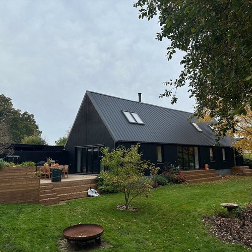 Projektet, der er beliggende i Espergærde, er både en større ombygning af et eksisterende hus fra 60´erne, samt en ny tilbygning. Bygherre, der er opvokset i huset, ønskede at bevare huset dels af bæredygtige årsager men også får at leve 3 generationer på samme matrikel. Mormor, der havde boet i huset i mange år, samt datter, svigersøn og deres 4 børn. De ønskede at kunne leve tæt sammen, men i 2 separate boliger. Derfor består bygningen af 2 forskudte bygningskroppe, der tilsammen skaber en helhed. Forskydningen skaber ligeledes forskellige uderum og zoner, hvor nogle er fællesarealer og andre relaterer sig mere til den enkelte bolig. Tilbygningen, der huser mormor, er opført som en træbygning med sort listebeklædning, og for at få et ensartet og sammenhængende udtryk beklædes og isoleres den eksisterende gasbetonbygning, der huser familien, også med sort træ. Husets originale anatomi er respekteret og har haft en afgørende betydning for dels den nye planløsning, som indordner sig efter det modulære princip huset originalt er tegnet med, men også for det visuelle udtryk. Bygningstypologien er bevaret og huset fremstår med sit oprindelige tagprofil med med ny tagbeklædning.