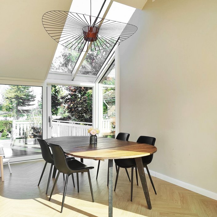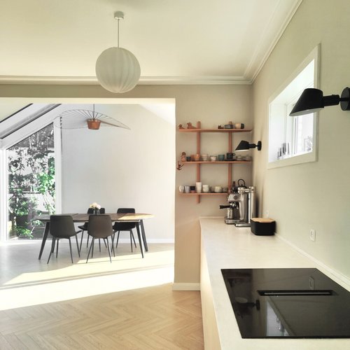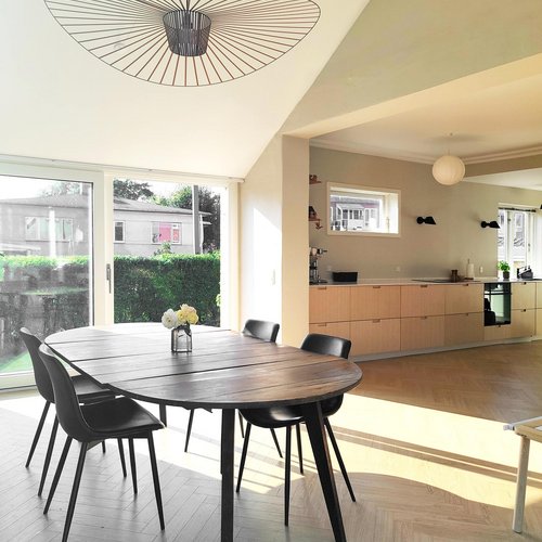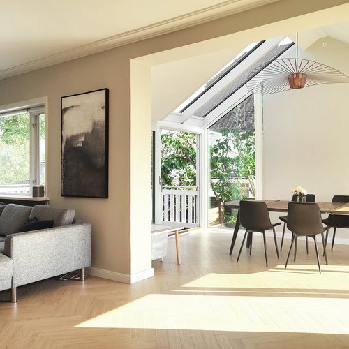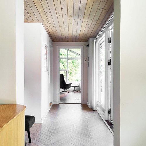 Familien der havde købt en villa ud mod Damhussøen ønskede at ombygge og modernisere den, så den passede til deres ønsker og behov. Huset havde en fantastisk placering ud mod Damhussøen, men i opholdsrummene oplevede man ikke rigtig udsigten mod søen og naturen. Derfor fokuserede vi på, at inddrage udsigten mod søen og naturen mest muligt uden at lave for store ændringer i husets arkitektur. I forlængelse af stuen var der i 1970érne opført en uisoleret udestue. Udestuen blev ombygget og efterisoleret og med en ny stor åbning blev den inddraget som en del af stuen. Derudover blev husets oprindelige planløsning transformeret med nye zoner, nyt køkken og et nyt langt kig gennem huset mod søen.