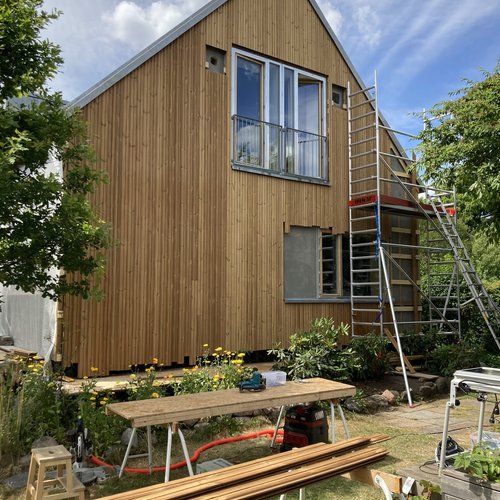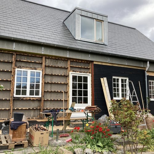 Det stod klart for familien, at de ville genskabe husets oprindelige karakter som træhus og sammentidig gennemgå en omfattende ombygning af 1. salen, samt energirenovering af tag og facader.