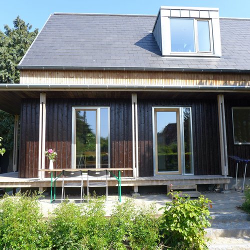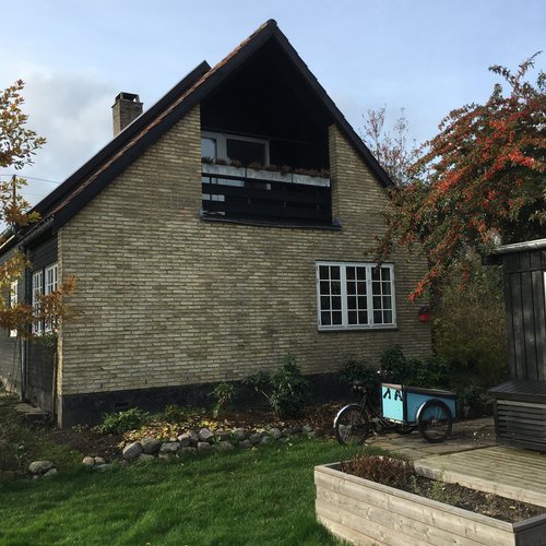 Bygherre-familen købte huset i 2015 men ombygningen og renovering begyndte først 5 år senere. Det oprindelige hus er et træhus fra 1925, placeret i blandt gule murstens rækkehuse i kvarteret. For at mime deres udseende, blev der ved en tilbygning i 1970 etableret en murret gavl med integreret logia. Det gav en uhensigtsmæssig disponering af rummene på 1.sal. Det oprindelige træhus blev over årene misveligeholdt.