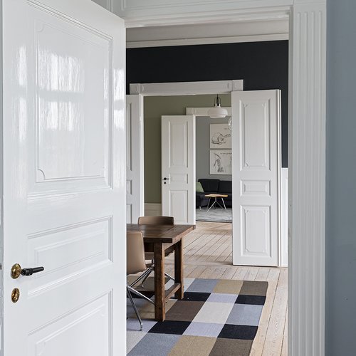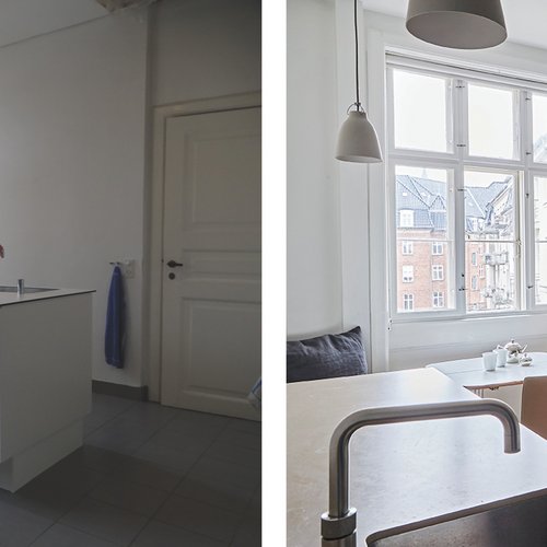 Den gamle planløsning med lange fordelingsgange skabte spildplads og afbrød det naturlige flow mellem køkken og spisestue. Derudover var køkken og bad placeret uden hensyn til lejlighedens oprindelige arkitektur. Ved at gentænke rumfordelingen blev gangarealer inddraget og flowet forbedret. Resultatet er en mere åben, sammenhængende og logisk indretning.
