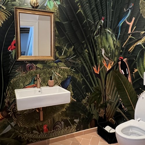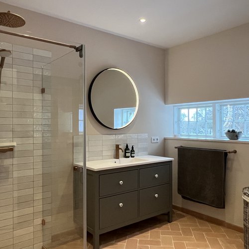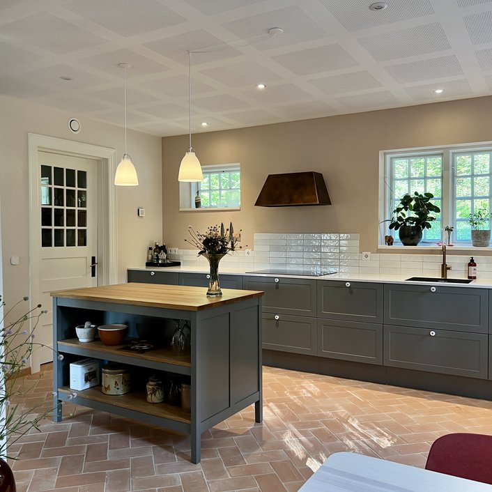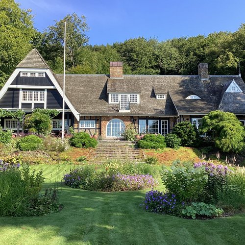 Alle installationer er fornyet, og der er etableret jordvarmeanlæg, varmegenvinding og smart home lys-styring. Materialer er valgt med respekt for husets stil. Der er plankegulve af ask fra egen skov. Klinker er spanske gulvtegl og de gamle døre med smukke messinggreb er bevarede. Nogle vægge er tapetseret med William Morrison tapet, som passer til husets stilperiode.