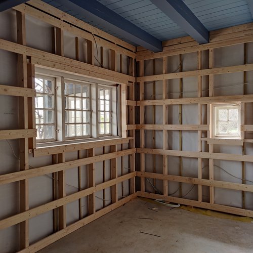 Projektet er en gennemgribende renovering af stueetagen og delvist første sal. Der er etableret nyt terrændæk og facade og tag er isoleret. Der er anvendt papiruld som isolering og facaden er opbygget med åndbare materialer inkl. maling af hensyn til bindingsværket. Mod syd er der tilføjet nye større vinduespartier. Øvrige vinduer er renoveret og tilføjet Optoglas.