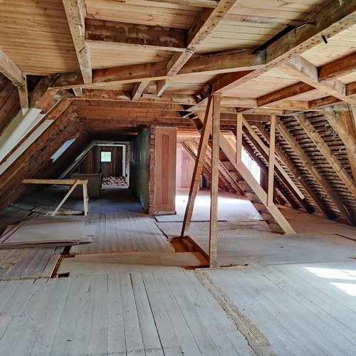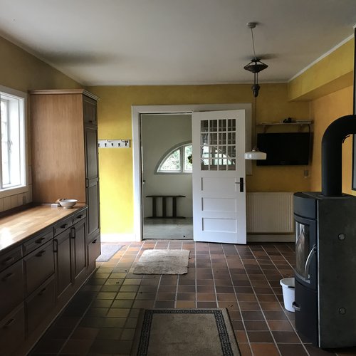 Huset er en skovejendom i bindingsværk med tag af lærkespån fra 1917. Det er et specielt og charmerende hus, men udgangspunktet var også energiklasse G i et hus uden isolering og med vinduer af enkeltlags glas. Der var sætninger og gulvets niveau faldt med mere 20 cm på tværs af huset. Køkken og bad fra slut 80’ erne var ikke up to date.