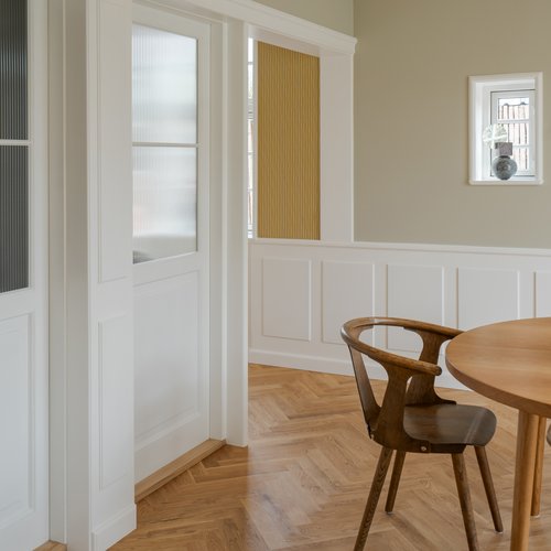 Rækkehuset bar præg en række dårlige renoveringer, hvor både planløsning og materialevalg var uden sammenhæng eller kvalitet. Med dette projekt er huset nænsomt genskabt og aktualiseret med respekt for dets oprindelige karakter og med blik for nutidige behov. Det er et eksempel på, hvordan man med omtanke kan bringe eksisterende byggeri til live igen.
