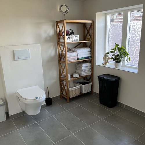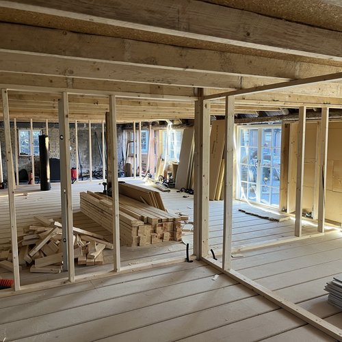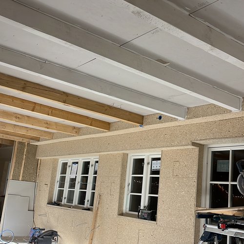 Vi har brugt træfiber isolering, hampe isolering og indvendigt er der pudset med ler og malet med ler. Udvendigt er der pudset med kalk.