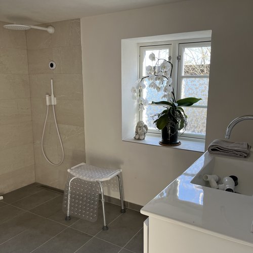 Vi ville have svigerforældrene op at bo hos os da deres bolig var ved at blive for stor. Ved at flytte dem op til os blev tre generationer samlet til glæde og gavn for alle. Svigerfar nåede det desværre ikke men Svigermor er flyttet ind.