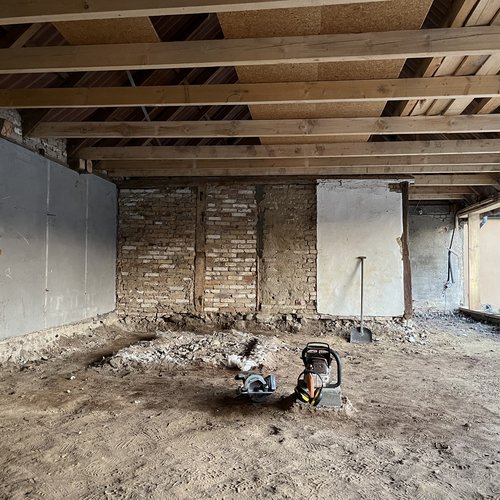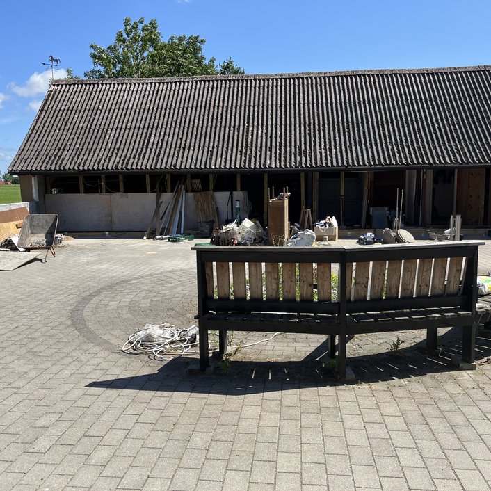 Målet var at bevare så meget så muligt af en gammel stald fra 18 hundrede tallet. Resultatet blev at vi bevarede en facade og to gavle og taget. Målet var også at bygge så biogent som muligt.