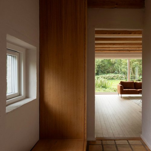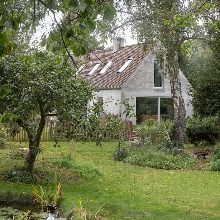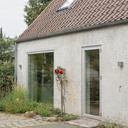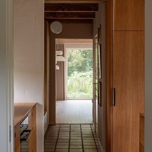 Ved at åbne mellem køkken og stue, inddrage en del af bryggerset og udvide enkelte vinduer, er der skabt mere lys i boligen, bedre sammenhæng med haven og nye muligheder for fælles ophold – alt sammen inden for husets eksisterende rammer. Nye tilføjelser – vinduer, snedkerkøkken og terrazzogulv i badet – er valgt med respekt for husets stil og robuste stoflighed. Projektet er gennemført i etaper med stram økonomi, og måske netop derfor står de enkle, præcise greb stærkt.