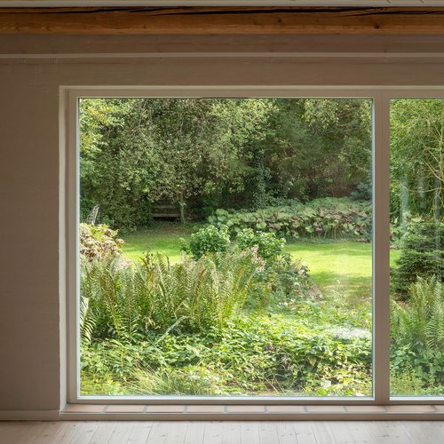 En af de helt særlige kvaliteter ved huset var haven. Samspillet mellem ude og inde har været vigtigt at forstærke ved at åbne op i planen og facaden, og haven bliver derfor tilstedeværende fra hele huset, hvilket skaber en helt særlig oplevelse og ro.