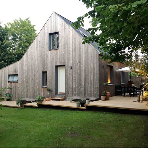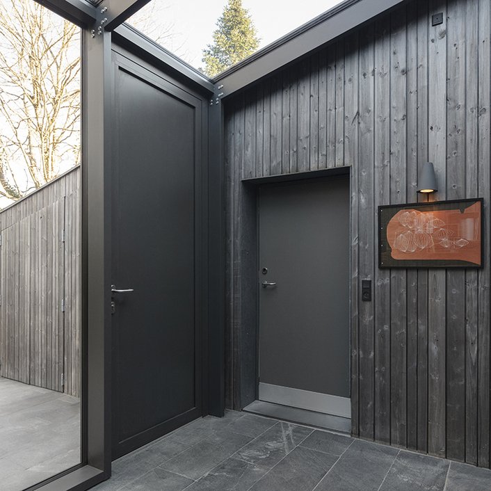 Grundplanen er ændret, og husets 96 m2 har fået selskab af en ny atriumgård. For at energioptimere boligen, uden at nedbringe de i forvejen små kvadratmeter, har fiskerhuset fået ny udvendig isolering. Det betød samtidig ny facade: en træfacade i certificeret materiale, som kræver minimal vedligeholdelse, har en lang forventet levetid og vil patinere smukt over tid.