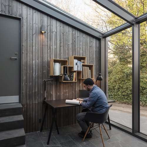 - Ideen var at lave en nyfortolkning af det gamle fiskerhus, og bevare en masse af de originale detaljer fra 1898 indvendigt. Derud over ville vi etablere en atriumgård foran huset, som nu benyttsr som tegnestue med meget højt til loftet og kik til både facade, skov og himmel.