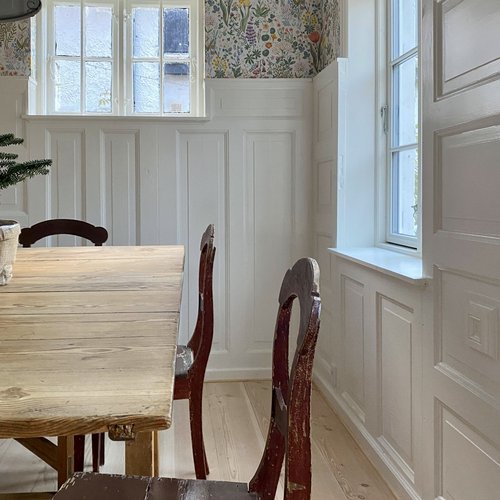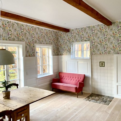 Man har tilstræbt at bevare husets identitet, køkkenet er indrettet i det oprindelige køkken samt bryggers, med et meget landligt og enkelt design i den nye indretning. Badeværelset er nyt, indrettet i et tidligere kammer, staldhuset havde oprindeligt ikke bad og toilet.