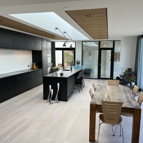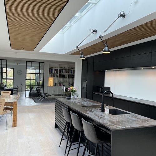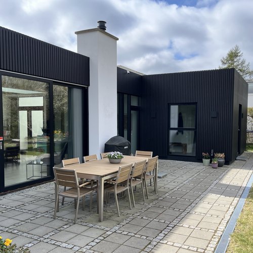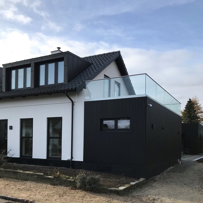 Projektet omfattede totalrenovering af exist. halvt dobbelthus og tidligere opført tilbygning, etablering af ny tagterrasse, opførelse ny tilbygning på 50 m2 indeholdende køkken og alrum. Herudover indretning af et mindre atrium i direkte tilknytning til tilbygningen.