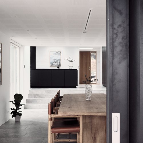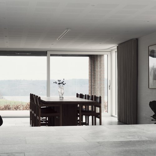 Villa Kyst var oprindeligt født med en arkitektur fra 80’erne med røde blødstrøgne teglsten og 45 graders vinkler en hel del steder. En arkitektur der i sin materialitet og form mest af alt mindede en om en vestjysk sparekasse. Bygherren ønskede at ‘genoplive’ huset så det igen ville være et attraktivt hus i det attraktive område på den attraktive grund. Fra Villa Kyst er der nemlig en smuk udsigt over eng, fjord og Munkebjerg skovene på den anden side af Vejle Fjord.